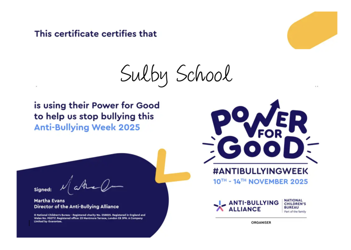 As associate members of the Anti-Bullying Alliance, we're proud to be taking part in Anti-Bullying Week 2025 here at Sulby School! The week kicks off on Monday with Odd Socks Day – a fun and colourful way to celebrate what makes us all unique and to show that there's no place for bullying in our school. We’re excited to stand together, raise awareness, and keep kindness at the heart of everything we do. You can find out more about the campaign by visiting the Anti-Bullying Alliance website.
