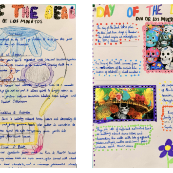 Our Year 6 pupils at Sulby School have been diving into their Hola Mexico! project with real enthusiasm, producing work that shows both strong research skills and genuine creativity. Looking at topics such as Día de los Muertos and the Chihuahuan Desert, pupils gathered information from a range of sources and learned to filter what they found - selecting key facts, organising them clearly, and presenting them in their own words. Their posters and reports show thoughtful decisions about layout, headings, and illustrations, with pupils combining factual accuracy with eye‑catching designs to help communicate their ideas effectively.