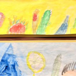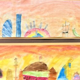 Our Year 1 children have created a wonderful collection of artwork inspired by American pop artist James Rizzi as part of their project on streets and buildings. After exploring Rizzi’s vibrant, playful style and his use of bold shapes and colours, the children designed their own imaginative cityscapes featuring lively skylines and well‑known landmarks. Using watercolours and mixed media, they experimented with blending bright backgrounds and adding detailed building silhouettes to bring their scenes to life. The finished pieces are full of character, creativity and colour - it's beautiful work, Year 1!